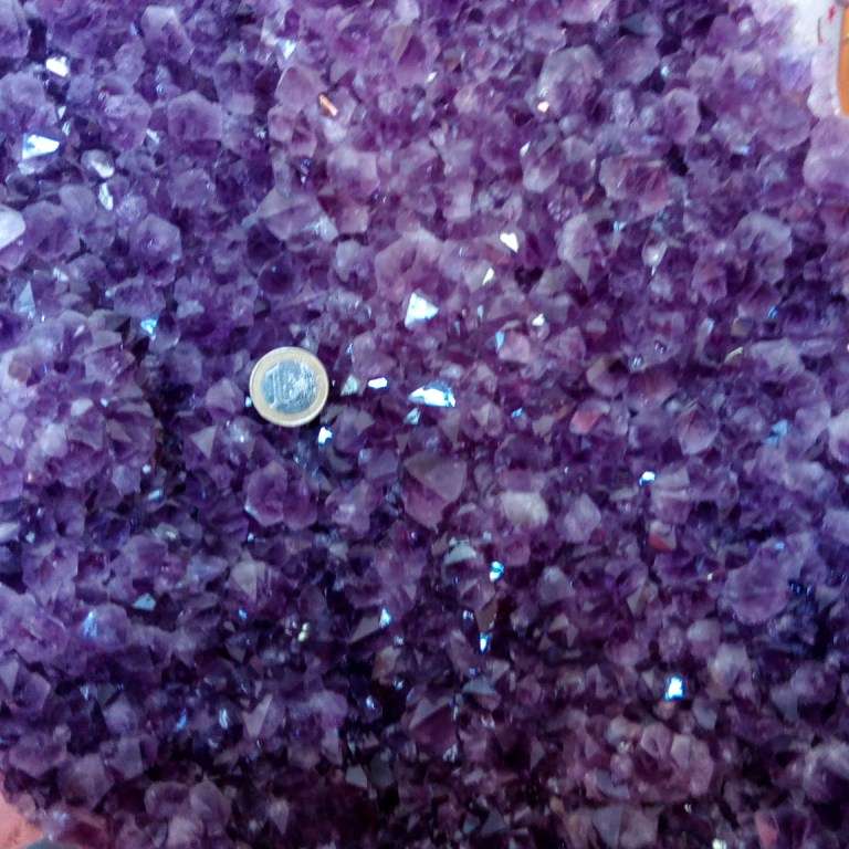 L’ametista ha durezza 7, peso specifico 2,5 e cristallizza nel sistema trigonale, il più grande esportatore di questo minerale è il Brasile (Rio Grande do Sul).