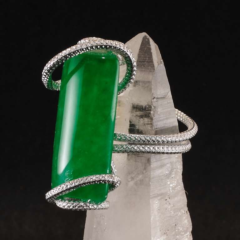 La giada è un silicato di alluminio e sodio di colore verde nelle varie sfumature, i cristalli sono rarissimi, solitamente si trova compatta.