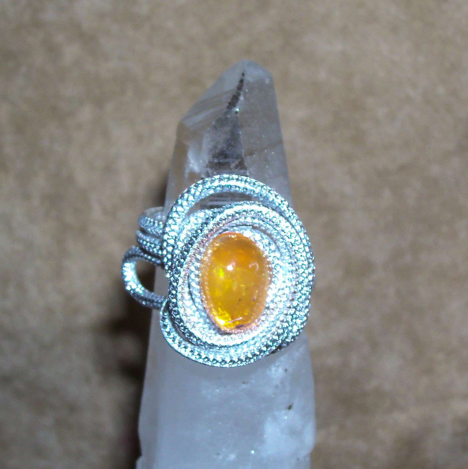 L’opale di fuoco è un ossido di silicio idrato di colore rosso-arancio fino al bianco trasparente, si presenta con intrusioni di minerali che si sono formati all’interno del’opale.
