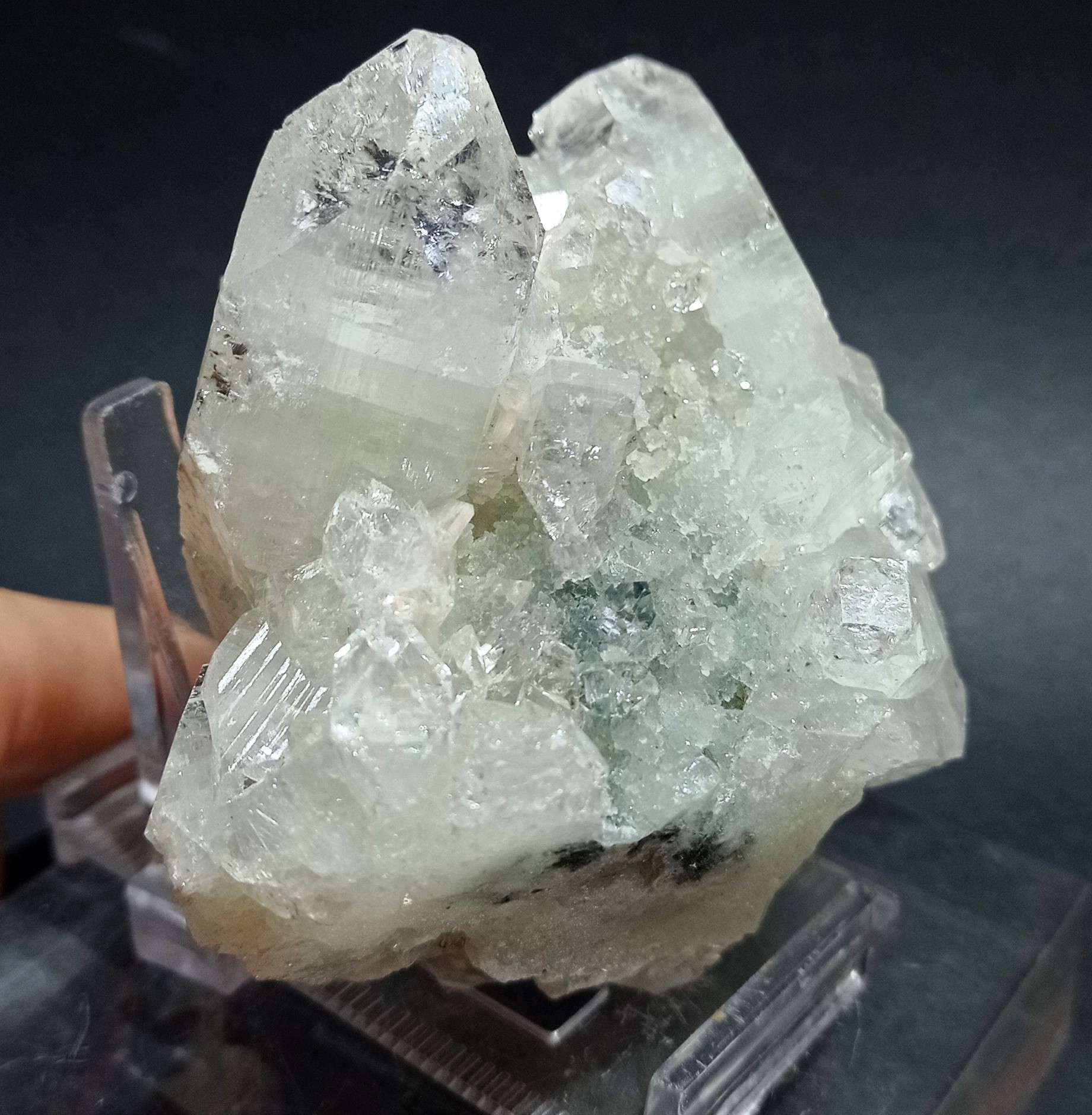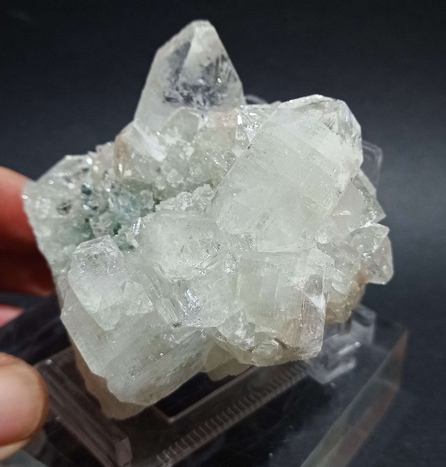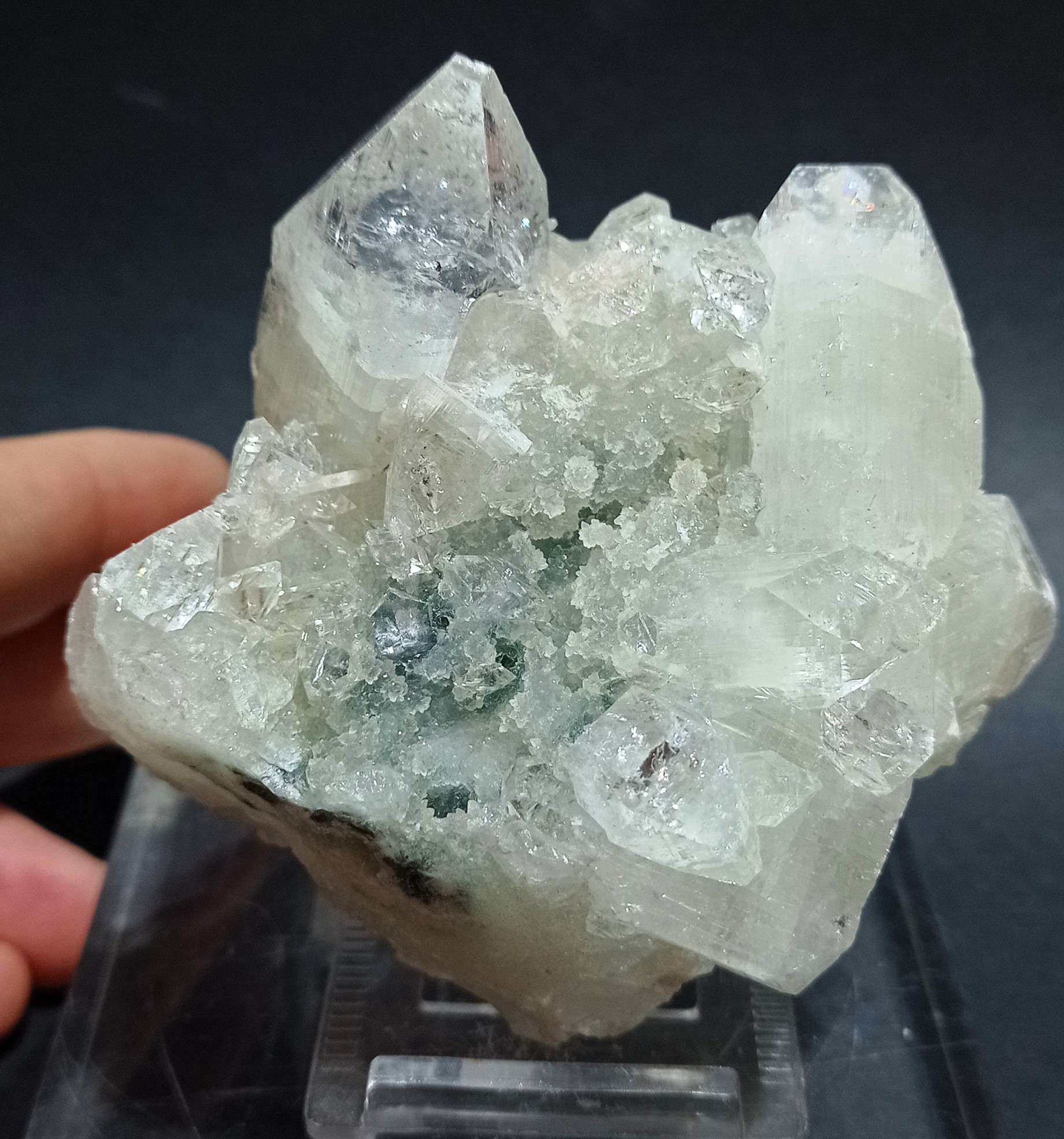 L’apofillite è un silicato di calcio e potassio di un colore che va dal bianco trasparente al verde brillante e si presenta sotto forma di cristalli cubo-ottaedrici e bipiramidali.