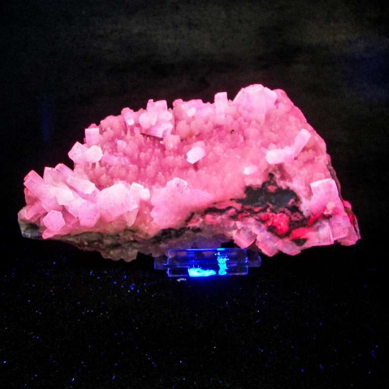 La caratteristica principale di questo minerale è la spiccata fluorescenza, il minerale esposto alla lampada di wood produce un eccezionale fluorescenza rosso arancio.