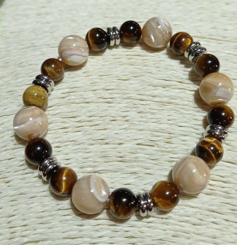 • DIMENSIONE E FORMA GEMMA: Sfere di occhio di tigre da 8mm e sfere in madreperla da 10mm.