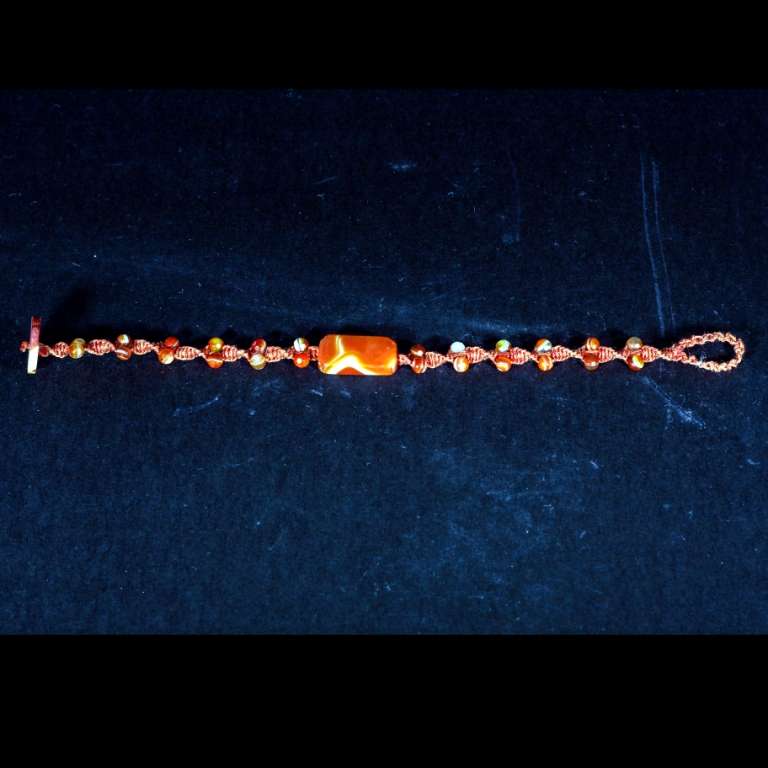 Grazie all’utilizzo di particolari fili il bracciale riesce ad avere un’ottima resistenza all’usura e una giusta rigidità e morbidezza, inoltre la chiusura viene effettuata con un occhiello in macramè in cui si inserisce un elemento in pietra dura.