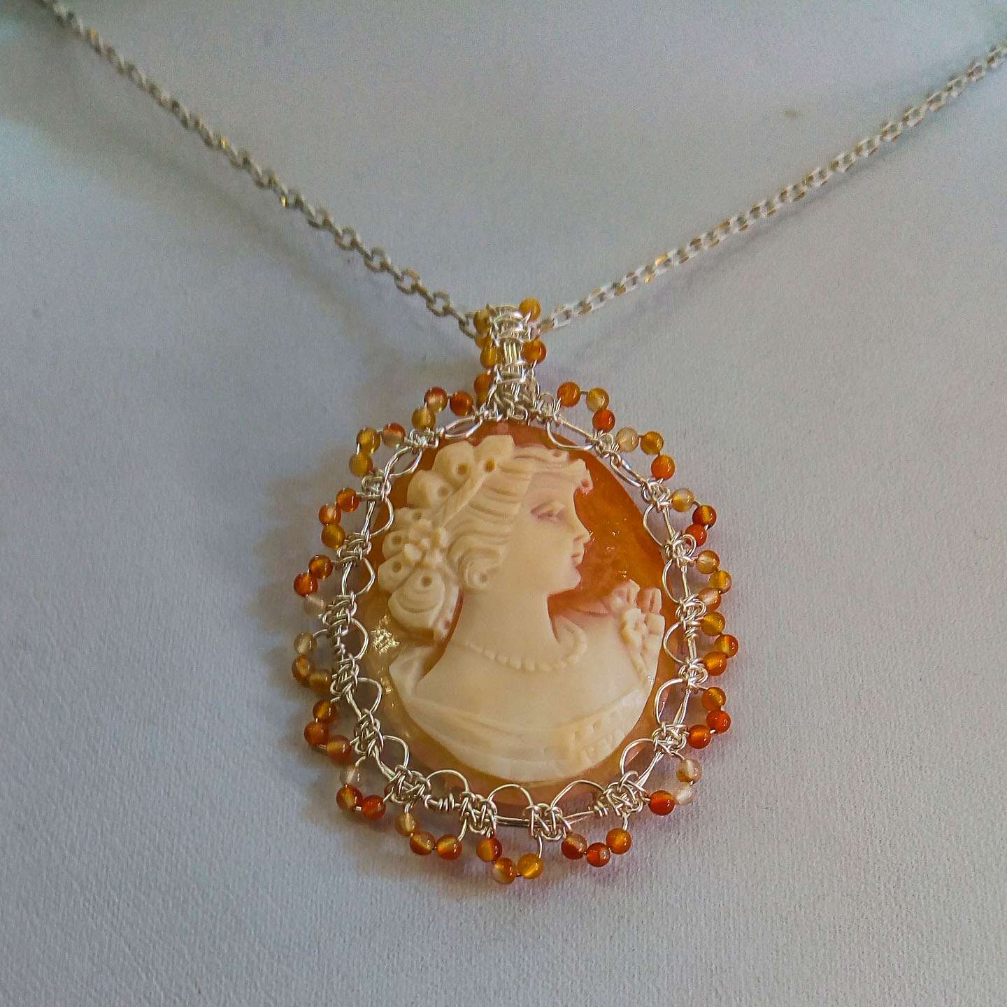 DIMENSIONE E FORMA GEMMA: Cammeo a forma di ellisse di 40*30mm, con sfere millimetriche di corniola.