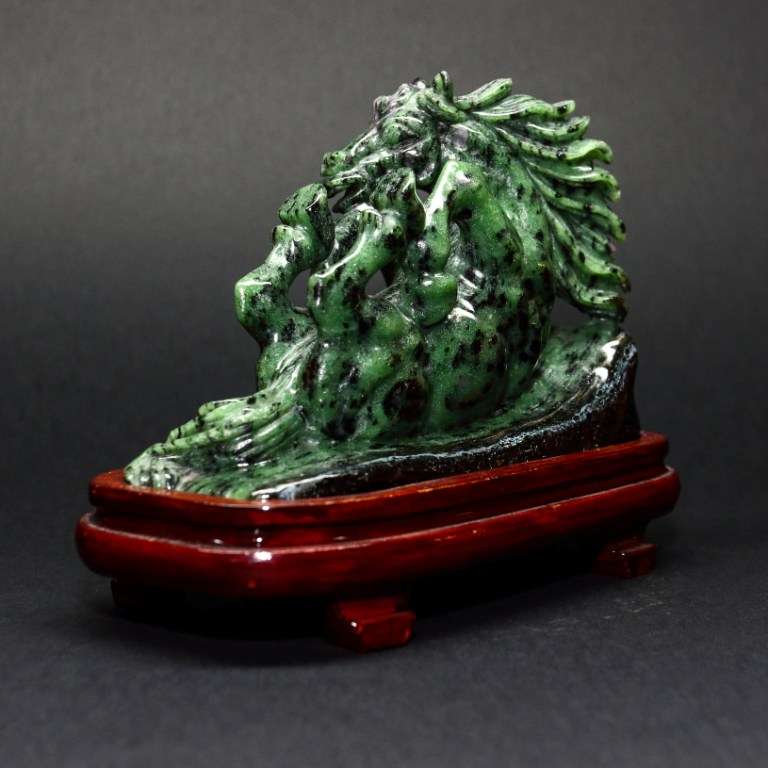 Home / SCULTURE IN PIETRE DURE / CAVALLO IN ZOISITE CON RUBINI