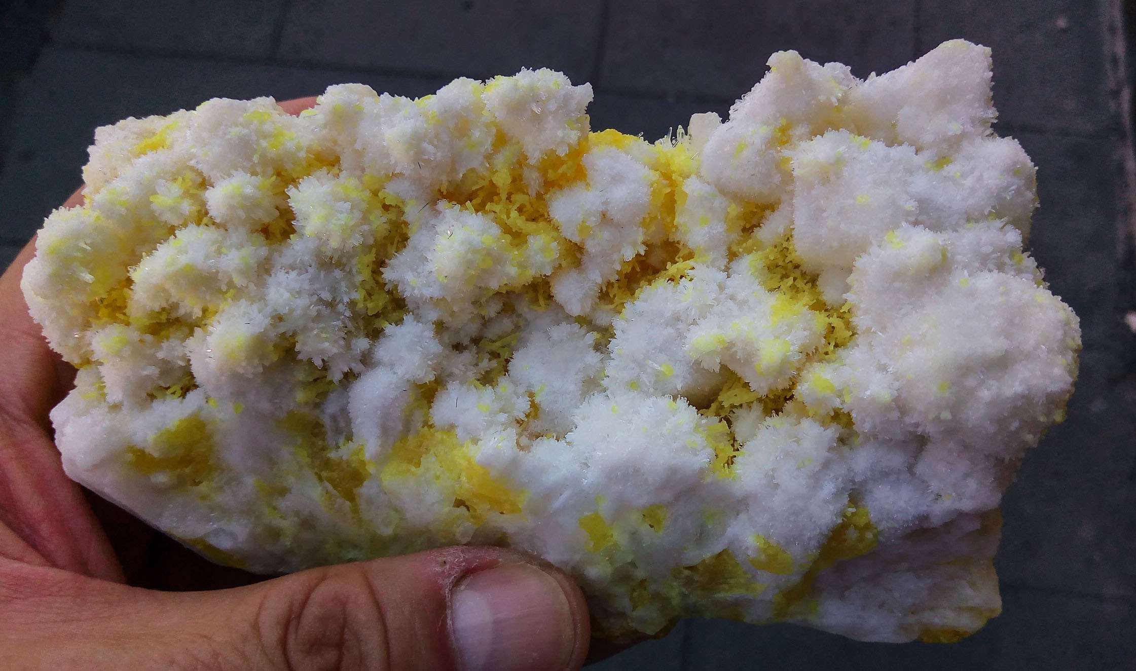 DIMENSIONE SINGOLI CRISTALLI: Cristalli di celestina immersi nello zolfo.
