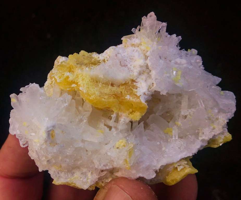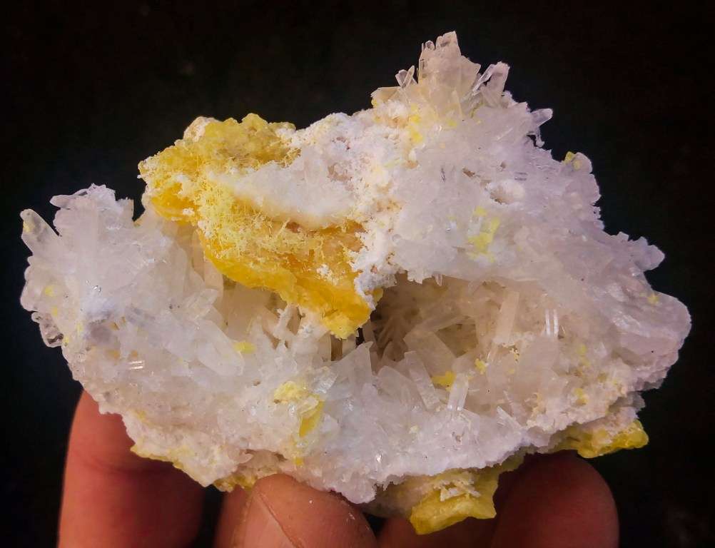 DIMENSIONE SINGOLI CRISTALLI: Cristalli di celestina immersi nello zolfo.