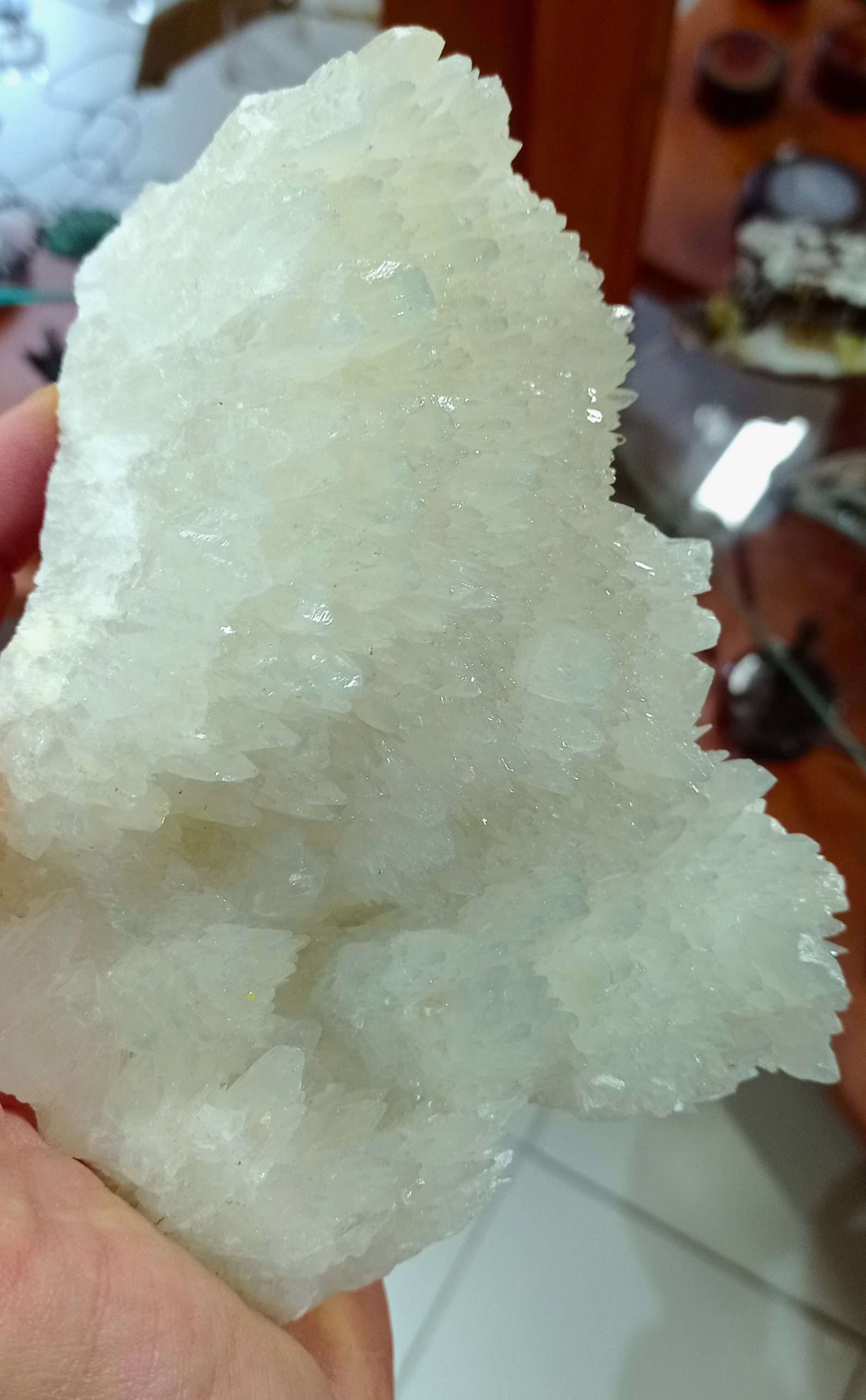 DIMENSIONE SINGOLI CRISTALLI: Cristalli di celestina azzurra a dente di cane.