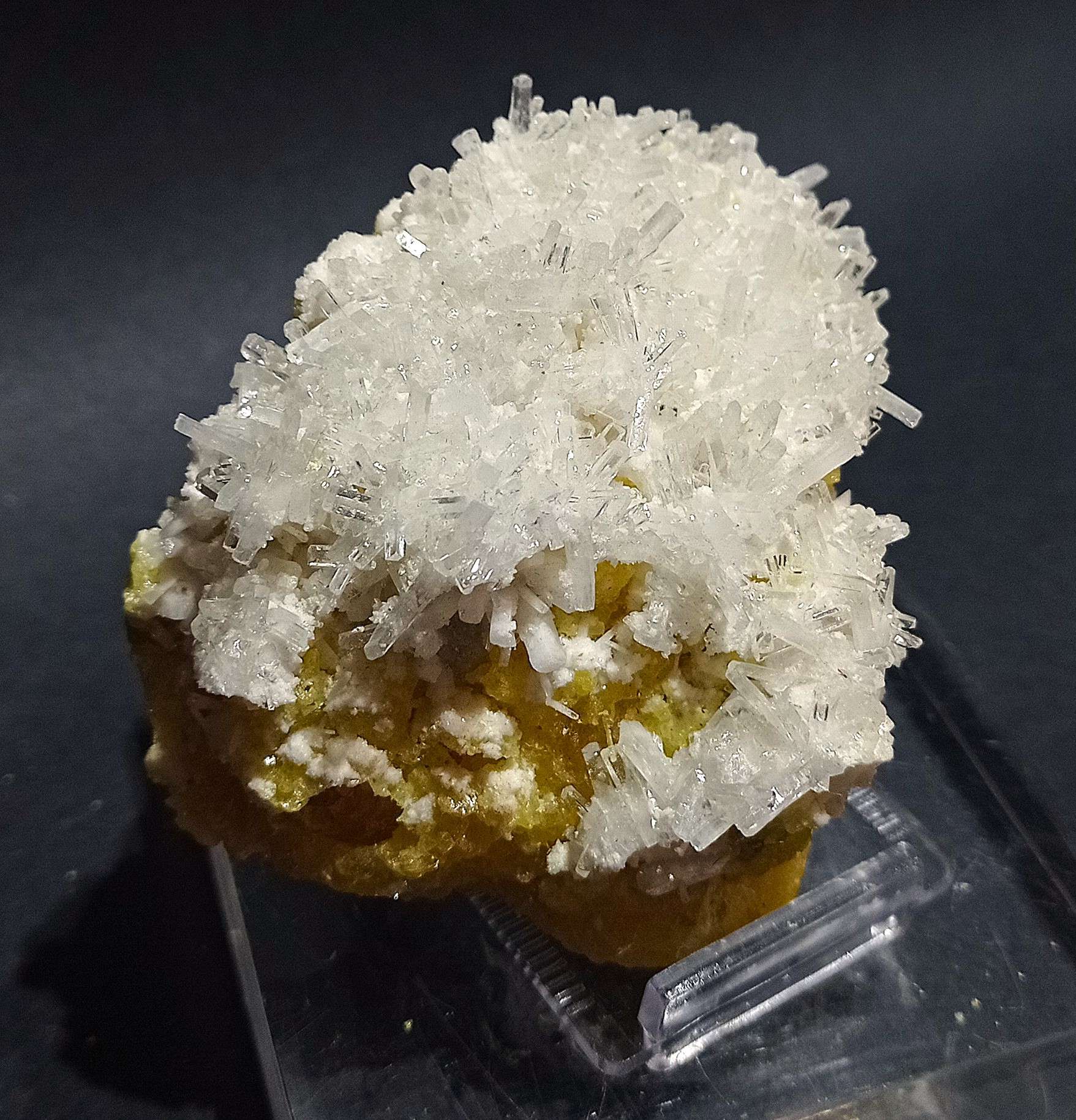 La celestina su zolfo proviene dalla miniera La Grasta situata nelle vicinanze del comune di Sommatino, provincia di Caltanissetta.