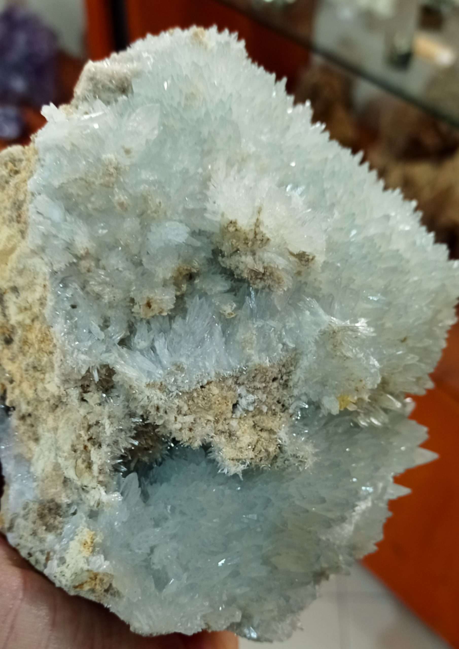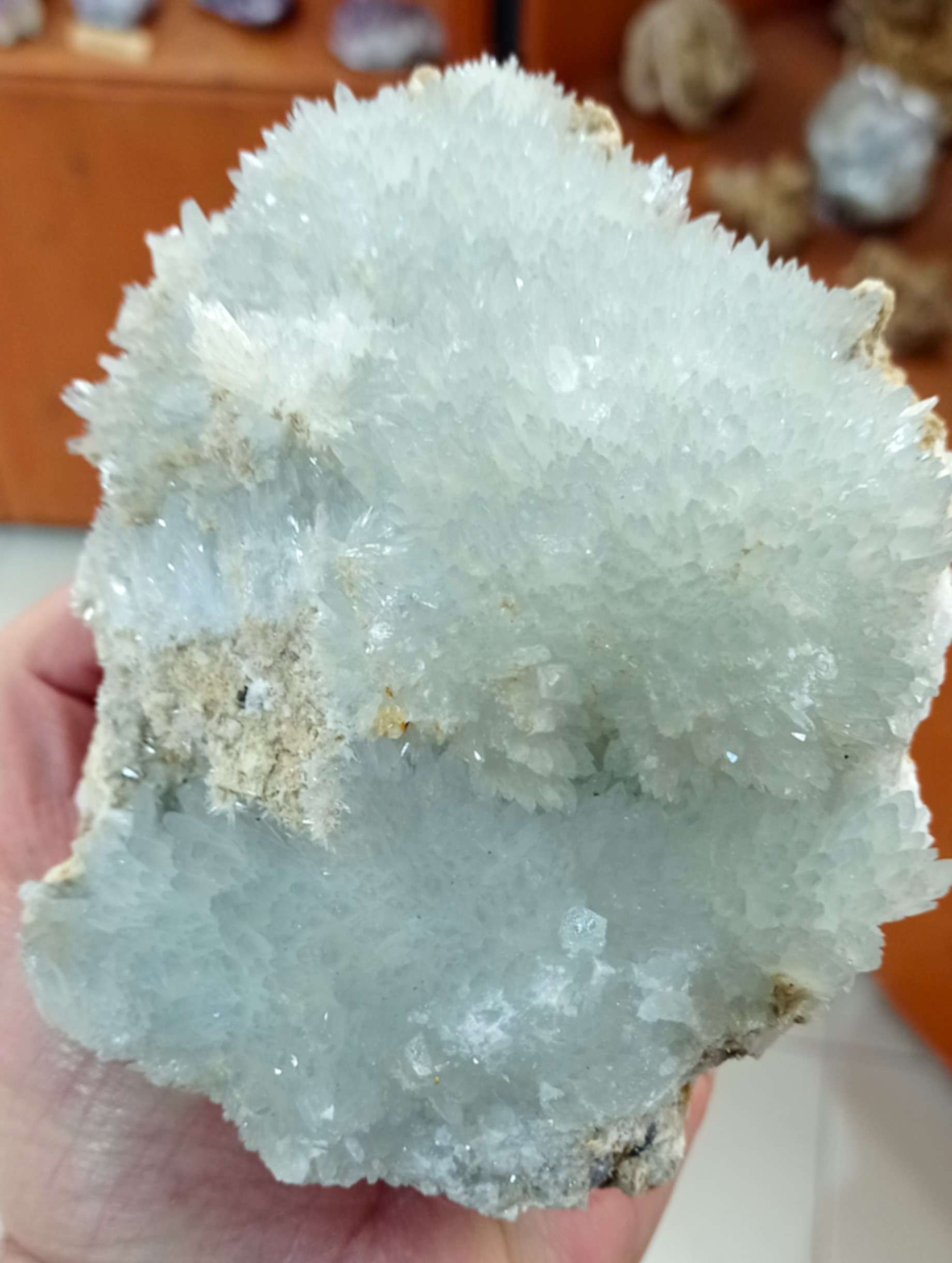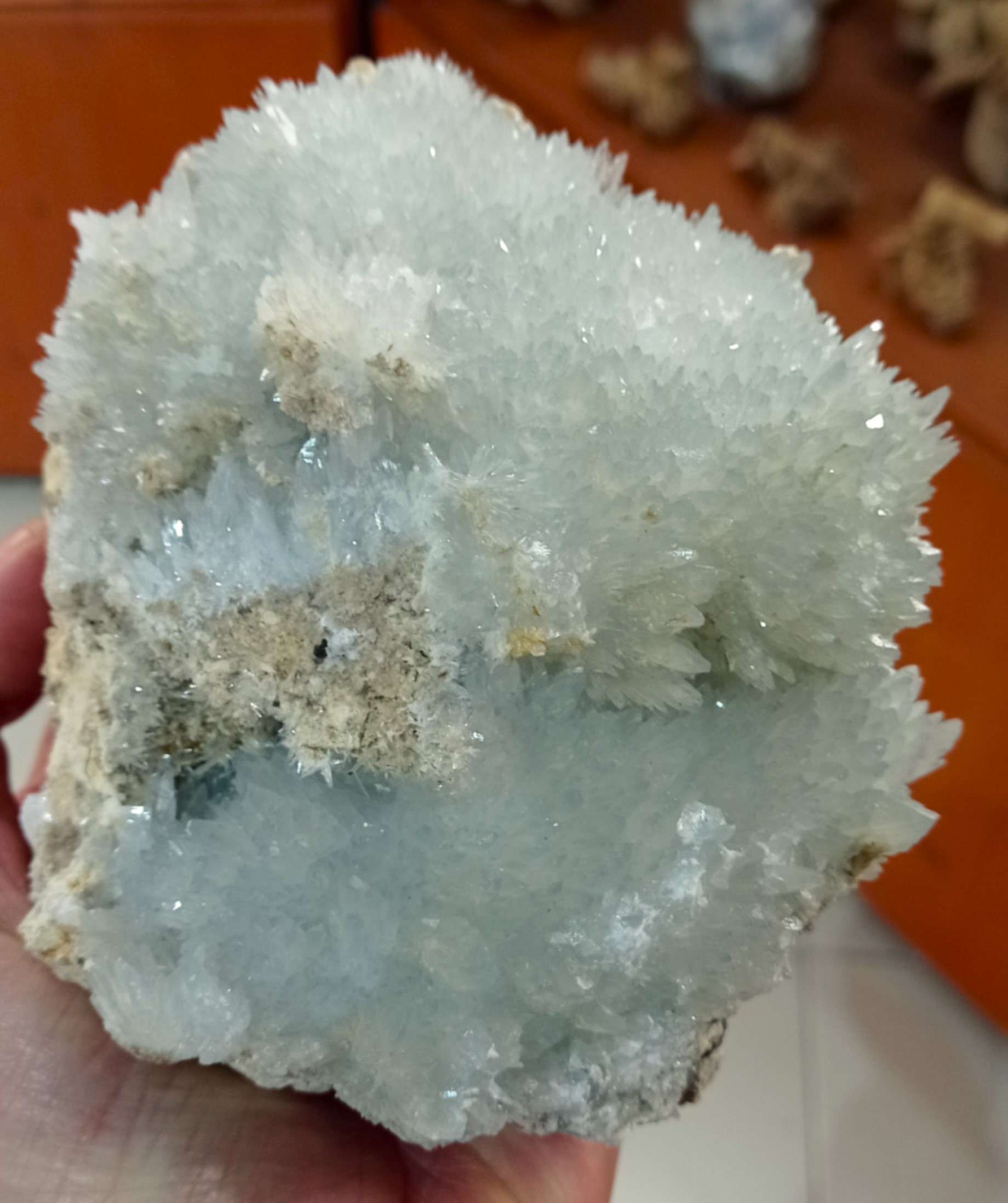 DIMENSIONE SINGOLI CRISTALLI: Cristalli di celestina azzurra a dente di cane.