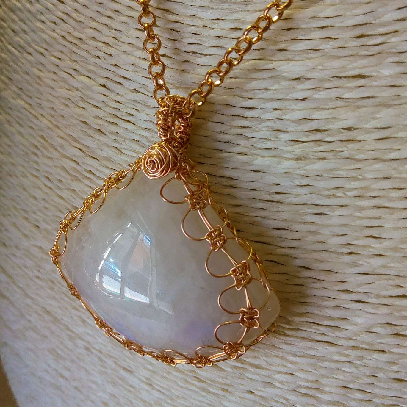 Pietra di luna è un silicato di potassio e alluminio, cristallizza nel sistema monoclino con peso specifico 2,6 e durezza 6,5 si rinviene all’interno di rocce plutoniche e granitoidi. La gemma in visione proviene India.