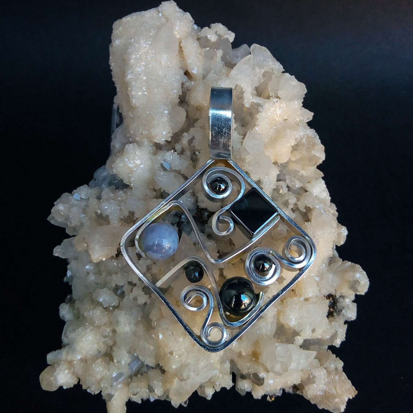Il calcedonio azzurro è una qualità di quarzo di colore azzurro e si trova all’interno di rocce plutoniche che sono state riempite dalla deposizione di acque idrotermali ricche di ossido di silicio e altri elementi.