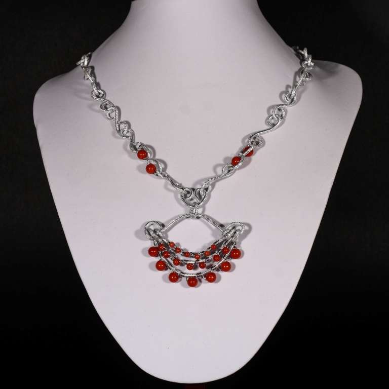 Si tratta di un corallo che cresce nell’Oceano Pacifico di colore bianco che subisce una colorazione speciale a lunghissima durata soprattutto per i fili di piccolo diametro.