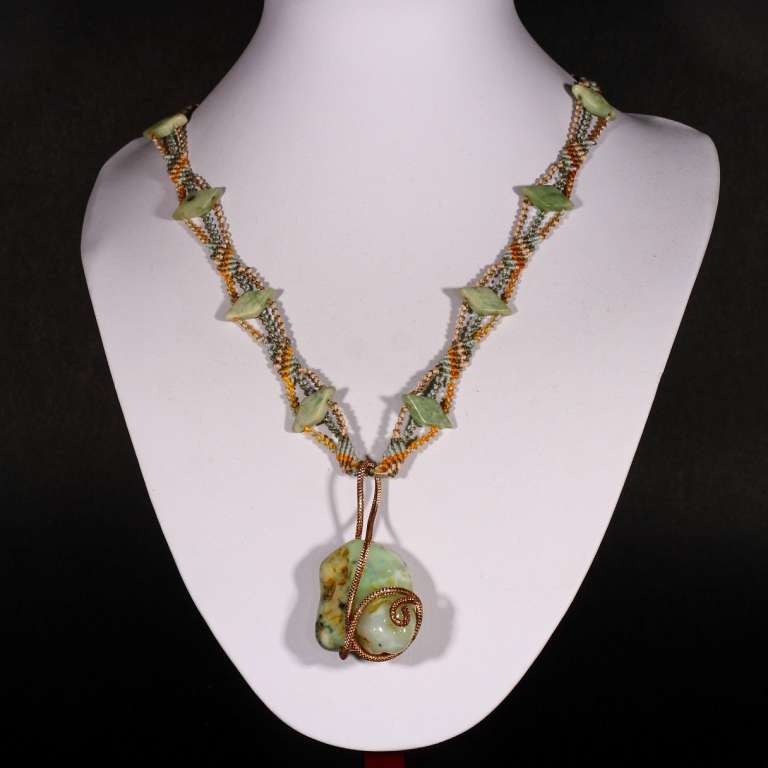 Grazie all’utilizzo di particolari fili la collana riesce ad avere un’ottima resistenza all’usura e una giusta rigidità e morbidezza, inoltre la chiusura viene effettuata con un occhiello in macramè in cui si inserisce un elemento in pietra dura.