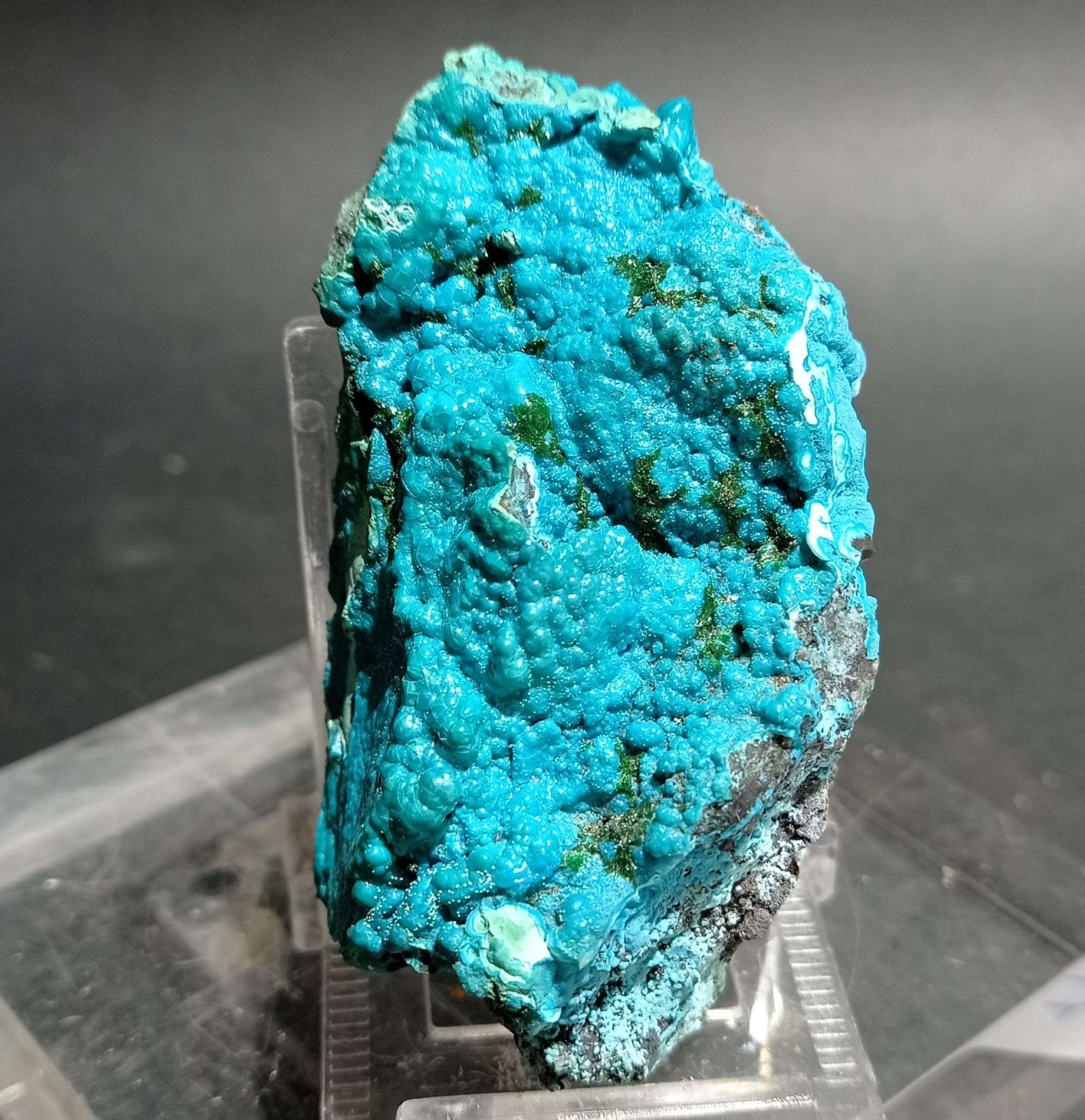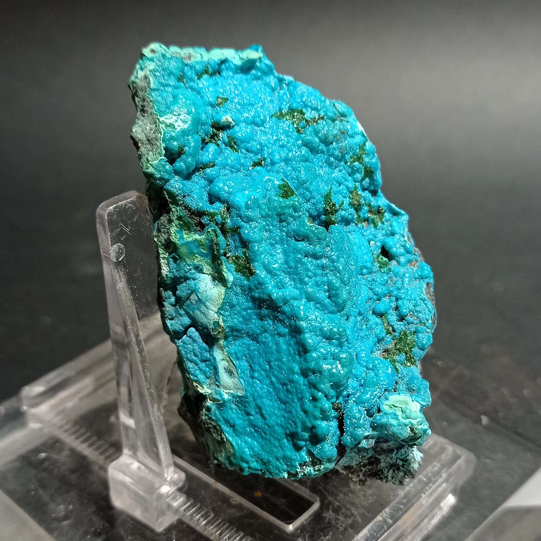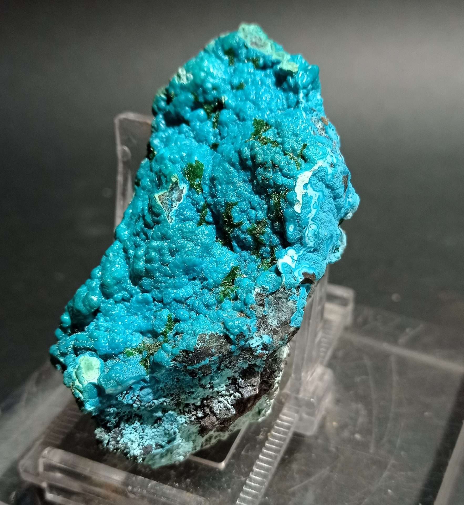 Il pezzo preso in esame proviene dalle cave di Palabamba del Congo Belga, oggi Zaire, spesso questo minerale si rinviene associato all’azzurrite  (minerale  di rame).