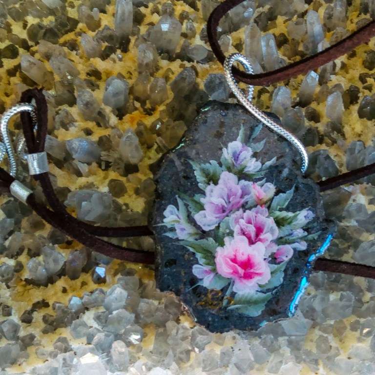 I monili in Micropittura su pietra lavica dell’Etna proposti dalla nostra azienda sono dipinti esclusivamente a mano da esperti artisti, non vengono utilizzati macchinari o stampe digitali.
