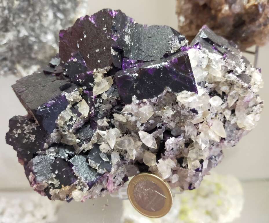 DIMENSIONE SINGOLI CRISTALLI: cristalli di fluorite da 35mm e calcite da 10mm.