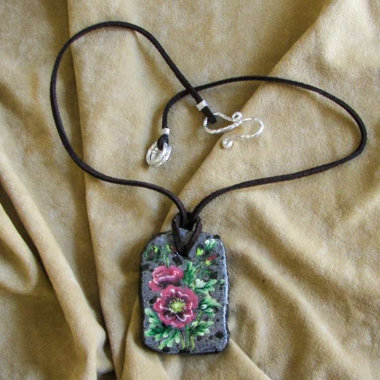 Il monile in pietra lavica dopo essere stato ultimato viene elegantemente incastonato, quasi come una cornice, da un filo in alluminio speciale anallergico e inossidabile.