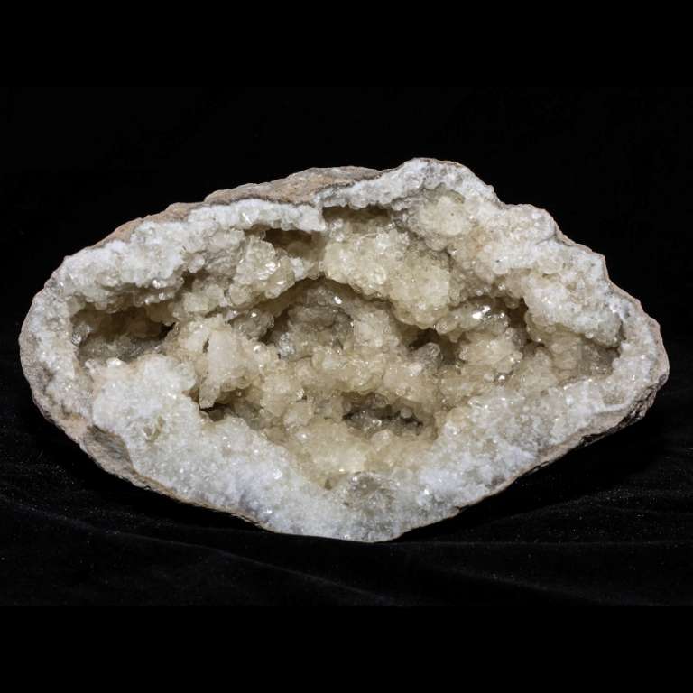 La calcite ha durezza 3, peso specifico 2,6 e cristallizza nel sistema trigonale, i geodi presi in esame provengono dal Marocco.