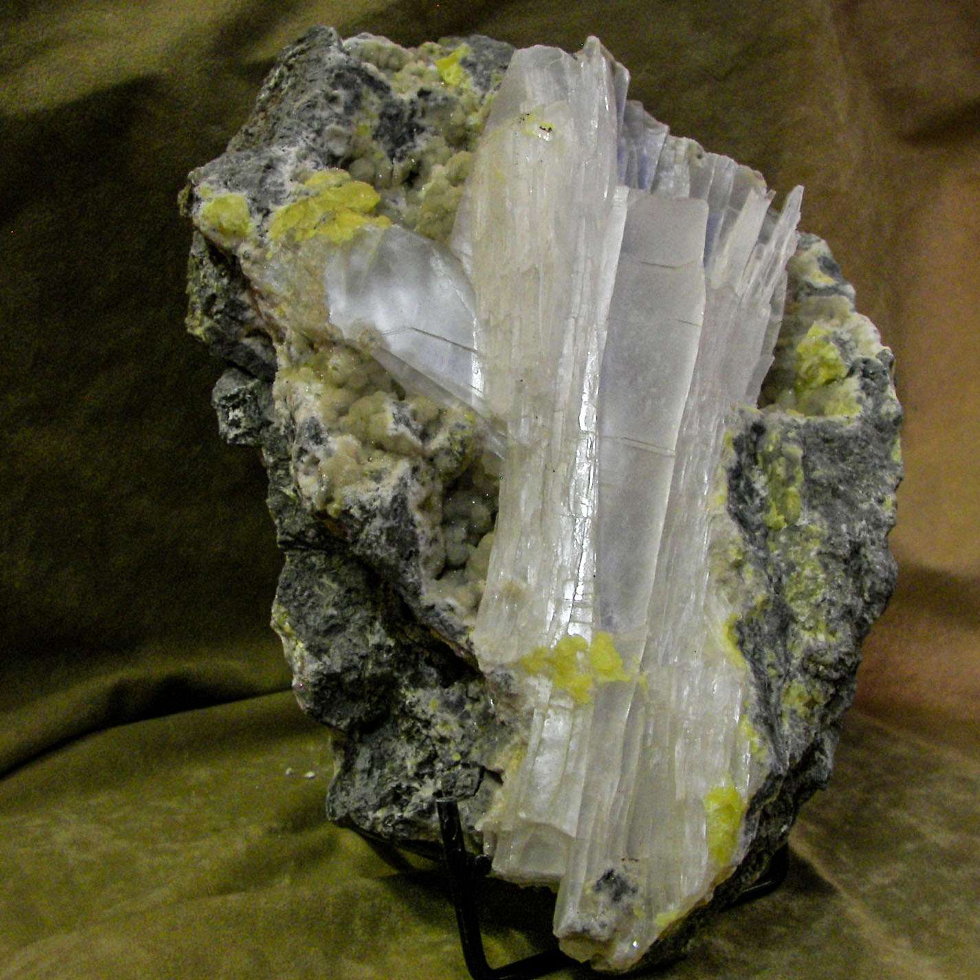 DIMENSIONE CRISTALLI: I cristalli hanno dimensione 25*25mm, altezza 150mm, presenza di cristalli millimetrici di zolfo e aragonite.