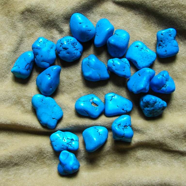 L’howlite è un silicato di calcio che cristallizza spesso in masse compatte di colore bianco venato di nero, sovente viene colorato di azzurro per imitare il turchese.