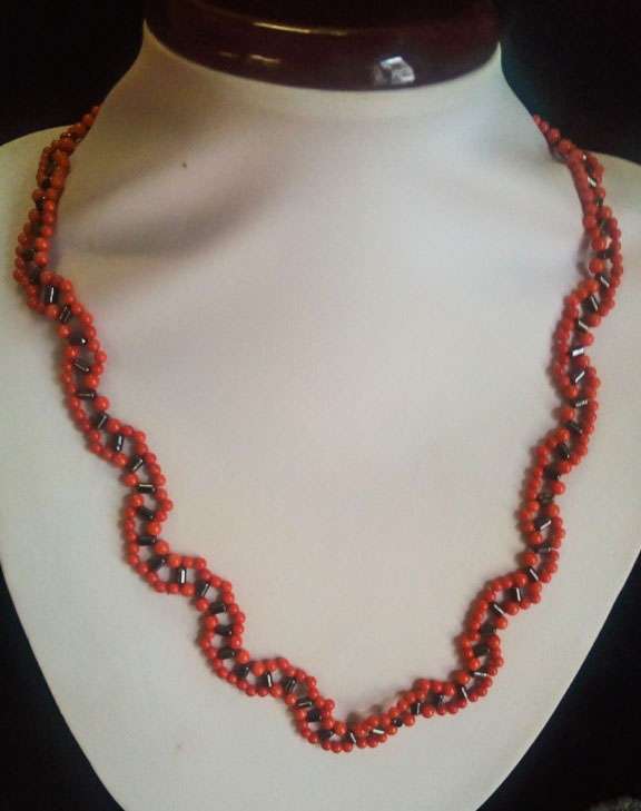 Si tratta di un corallo che cresce nell’Oceano Pacifico di colore bianco che subisce una colorazione speciale a lunghissima durata soprattutto per i fili di piccolo diametro.