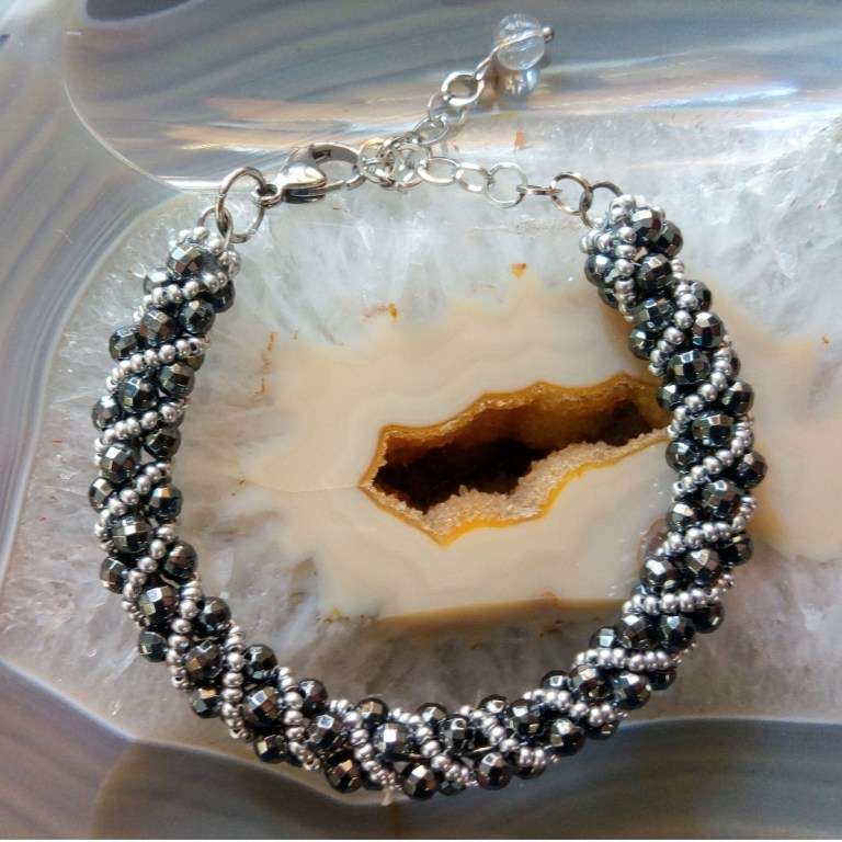 DIMENSIONE E FORMA GEMMA: sfere sfaccettate di ematite da 4mm e sfere d’acciaio da 2mm, chiusura in acciaio .