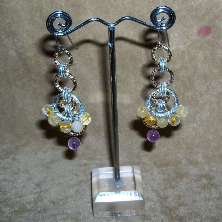 ORECCHINI CON QUARZO CITRINO E AMETISTA
