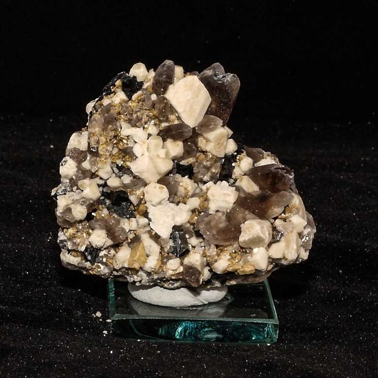 Si tratta di un campione in cui sono presenti più minerali quali: quarzo di un colore quasi sempre fumé, ortoclasio di un colore bianco crema e di aegirina di un colore nero brillante, il campione si è formato in ambiente pegmatitico