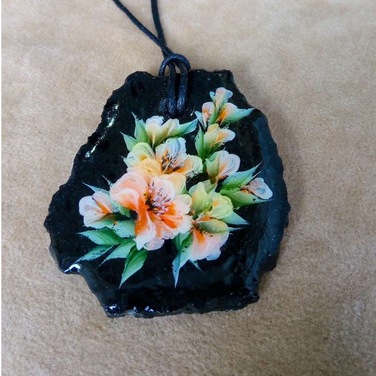 I monili in Micropittura su pietra lavica dell’Etna proposti dalla nostra azienda sono dipinti esclusivamente a mano da esperti artisti, non vengono utilizzati macchinari o stampe digitali.