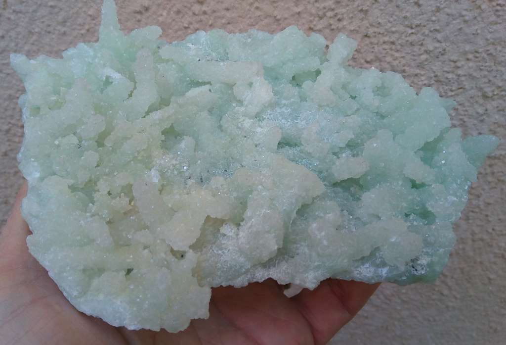 La prehnite si forma principalmente come minerale secondario o idrotermale in cavità all’interno di rocce ignee basiche (spesso in associazione con zeoliti). Si ritrova all’interno di rodingiti incluse nei basalti o nei gabbri tettonicamente inclusi nelle serpentiniti della serie ofiolitica come il risultato di metasomatismo. Un’altra occorrenza tipica è nella zona di contatto tra serpentiniti fratturate e gabbri o basalti relativamente non alterati, in associazione con anfiboli actinolitici, clorite ed idrogrossularia.