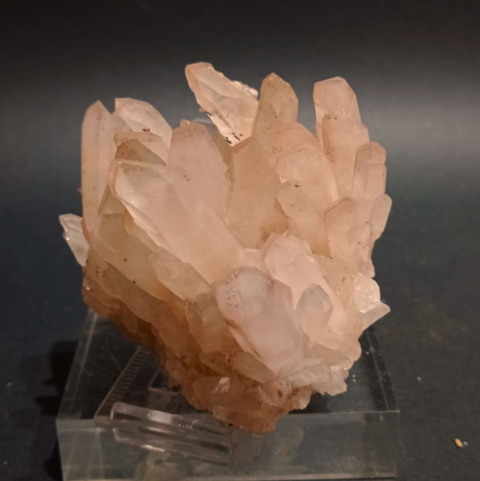 Il minerale in visione è un quarzo con limonite ; il quarzo è compltamente ricoperto da limonite (ossido di ferro) si trova all’interno di rocce plutoniche che sono state riempite dalla deposizione di acque idrotermali ricche di ossido di silicio e altri elementi.