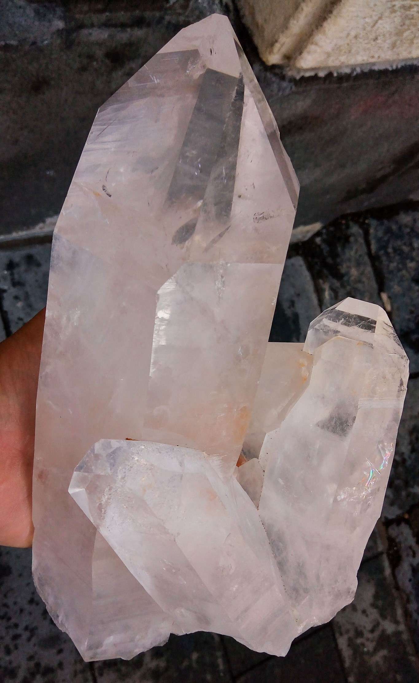 Il quarzo ialino è un quarzo di colore che va dal bianco latteo al bianco trasparente e si trova all’interno di rocce plutoniche che sono state riempite dalla deposizione di acque idrotermali ricche di ossido di silicio e altri elementi.