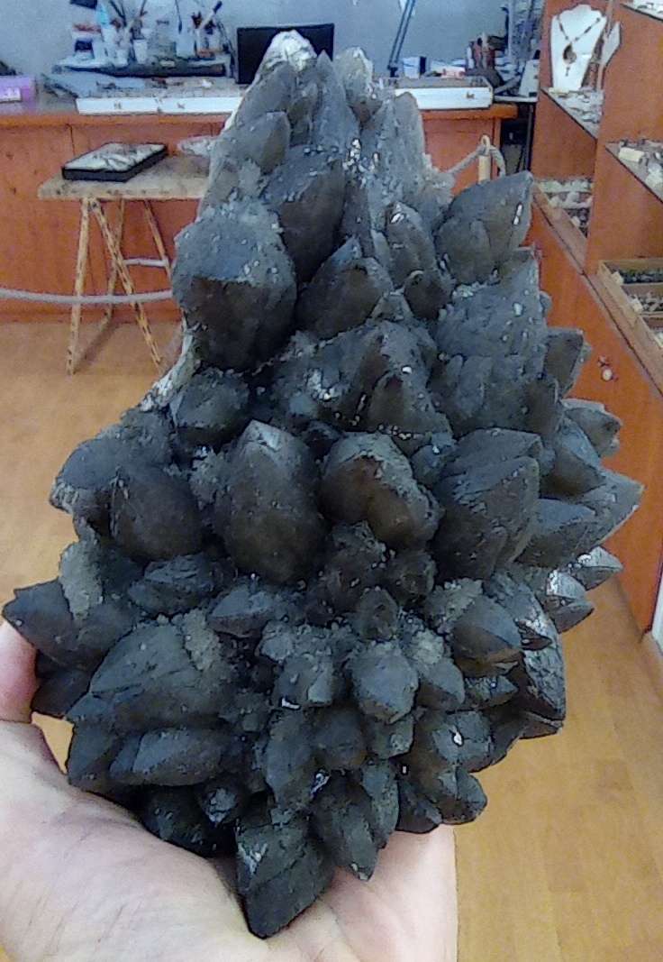 Il quarzo morione è un quarzo di colore nero e si trova all’interno di rocce plutoniche che sono state riempite dalla deposizione di acque idrotermali ricche di ossido di silicio e altri elementi.