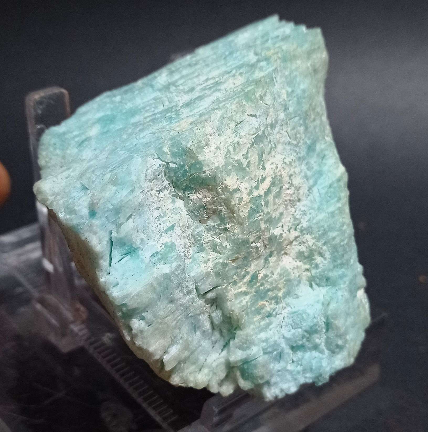 L’amazzonite è un silicato di potassio di colore verde, si trova sotto forma di cristalli prismatici e in forma massiva, si forma all’interno di rocce granitiche e pegmatitiche.