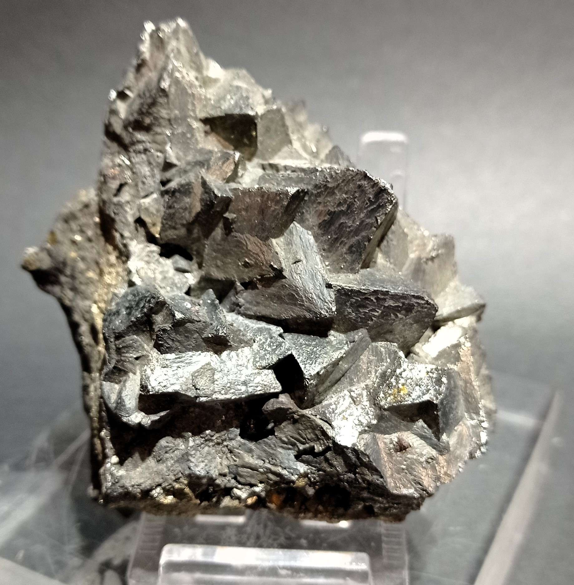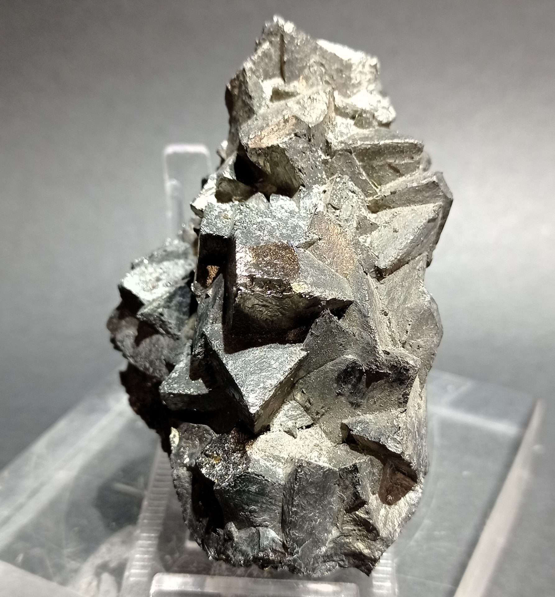 DIMENSIONE SINGOLI CRISTALLI: I cristalli di tetraedrite sono 15*15mm, il pezzo è parzialmente cristallizzato a pirite nella parte posteriore.