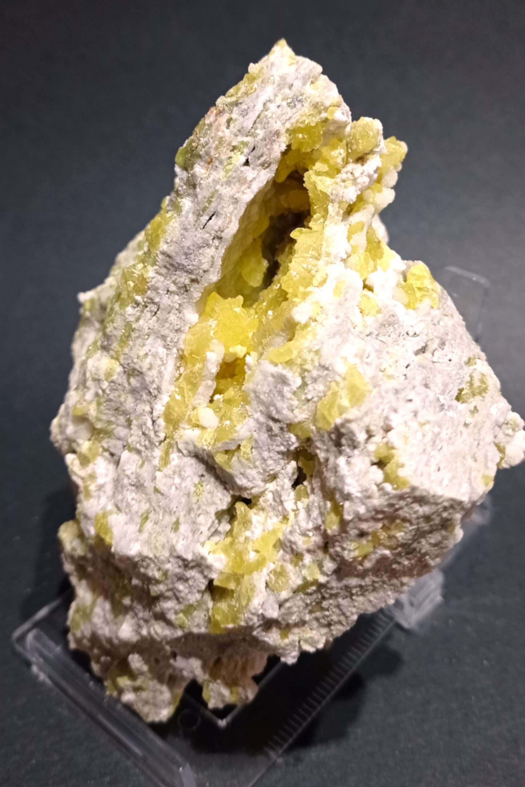 Da queste miniere sono stati estratti stupendi campioni di zolfo di colore giallo brillante come quelli in visione.
