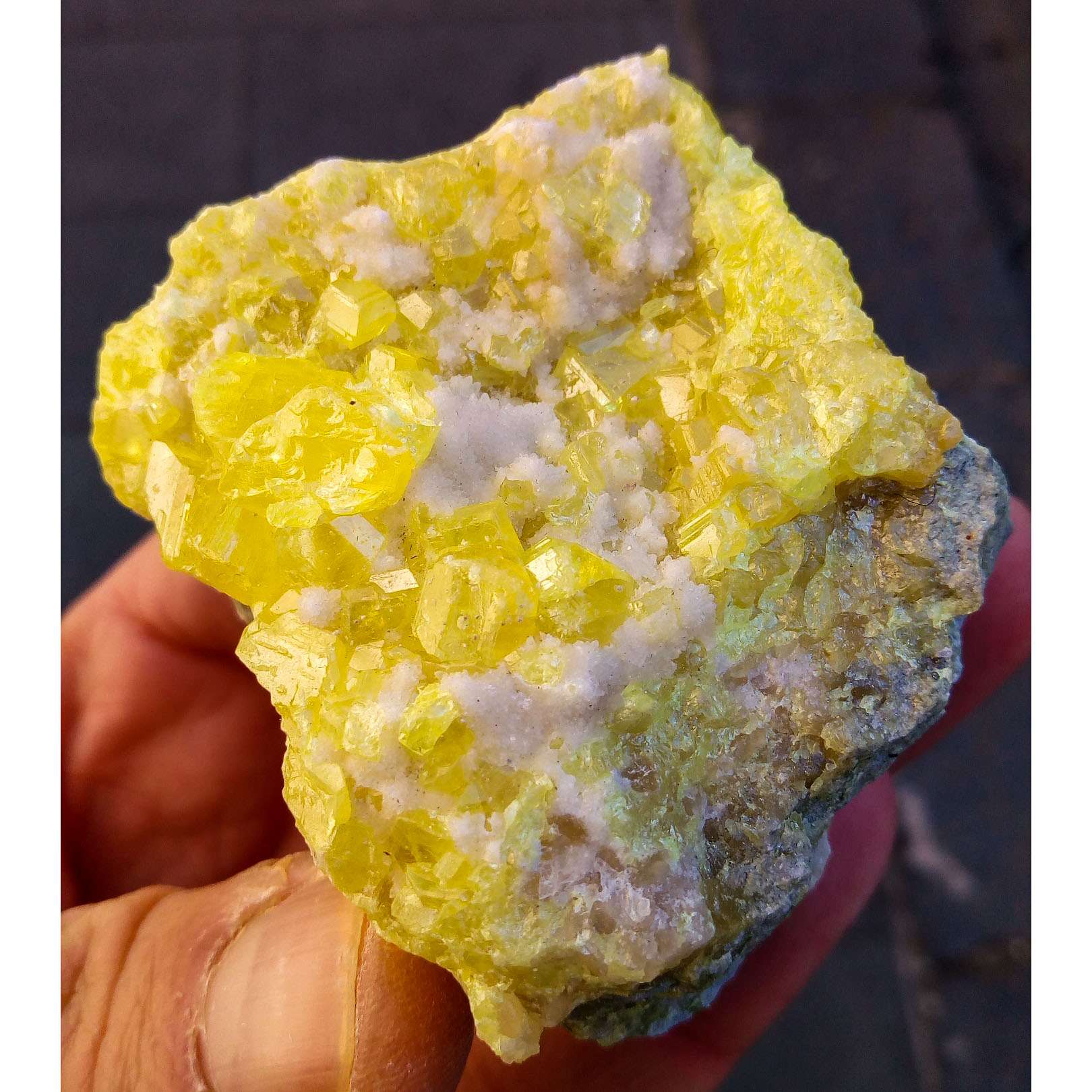 DIMENSIONE CRISTALLI: cristallI di zolfo da 4 a 7mm molto brillanti e tabulari