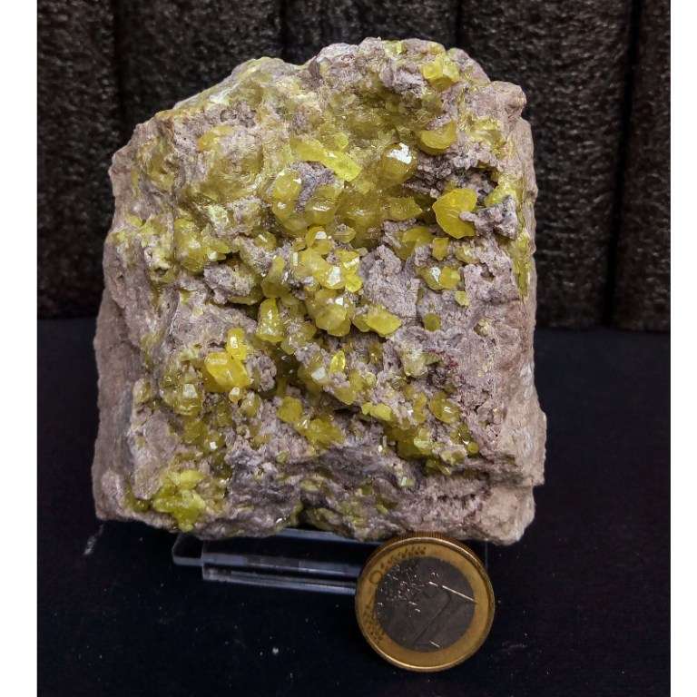 DIMENSIONE CRISTALLI: cristallo di zolfo da 5 a 8mm, molto brillanti.
